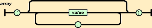 数组是有顺序的值的集合。一个数组开始于"[",结束于"]",值之间用","分隔。