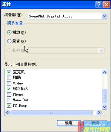 小提示:在“音量控制”窗口中,单击“选项→高级控制”,然后点击“麦克风”下的“高级”按钮,在打开的对话框中取消对“Mic Boost(话筒增强)”项的选择,否则会有非常大的杂音和回音。