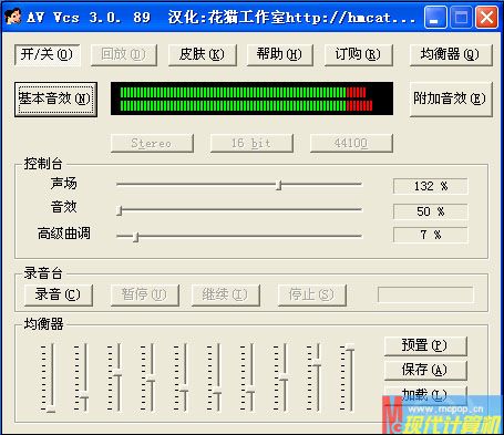 为了让模仿的声音更加逼真一些,接下来还可对控制台做一些调整。声场部分是从左到右音调越来越高,实际使用时,要想模拟男声,可以调节在中间偏左部分,女声就要调节在中间偏右部分;音效部分是从左到右声音越来越尖锐;高级部分是从左到右越来越成熟。另外还可对均衡器进行调节,经过这一番设置便可得到令你都感到绝对陌生的女声了。