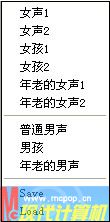 第三步:选择你需要变化的声音。点击“基本音效”,在弹出的菜单上有多种声音效果供选择(图3),如果想模仿女生,一般都是直接使用女声1、女孩1、年轻的女声1三者中的一个,同时我们还可以自己动手调节。当在控制台调节好合适的效果后,可以点击Save保存我们的调节效果,而Load则是读取我们保存的效果。