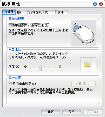 在某些特殊的应用比如游戏里,如果你需要频繁地用到右键,而通常食指又比中指灵活,可以在“切换主要和次要按钮”旁边的方框中打钩,这样右键和左键就互换过来了。如果要取消互换,将钩去掉即可。