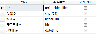 首先来建立一个这样的SQL Server数据表,表名设为“提交验证”: