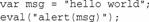 这种功能非常强大,不过也非常危险。使用eval()时要极度小心,尤其在给它传递用户输入的数据时。恶意的用户可能会插入对站点或应用程序的安全性有危害的值(叫做代码注入)。