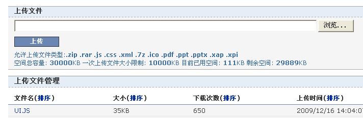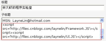 在这个页面,我们可以上传我们自己的JS,然后就可以得到格式为http://files.cnblogs.com/[博客地址]/[文件名]的URL,例如我的博客上实现UI的核心代码的URL是http://files.cnblogs.com/laynelin/UI.JS