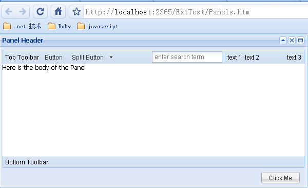 Extjs为我们封装好了Panel,Panel具有统一的标题头,面板体,面板底部,还可以自由的添加工具栏等。另外,extjs中还有丰富的布局,可以用来布局Panel。这种方式很像Java的Swing. Panel可以嵌套,可以作为整个页面的框架,也可以作为一个小功能区。前几篇文中用到的FormPanel就是继承自Panel类的。