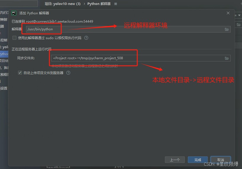 8. 之后等待pycharm把这些内容上传到服务器即可使用pycharm运行远程服务器了