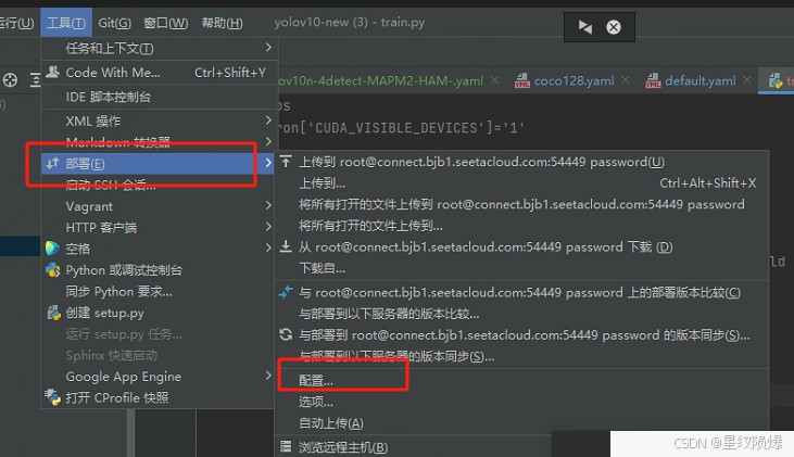 首先,打开pycharm,在工具栏配置好文件上传服务器,这个地方的配置主要是为了方便以后上传文件和下载文件。