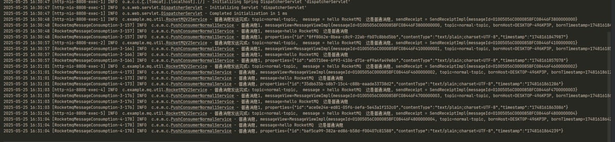 # 验证是否启动成功 tail -n 500 nohup.out tail -f ~/logs/rocketmqlogs/broker.log tail -f ~/logs/rocketmqlogs/proxy.log