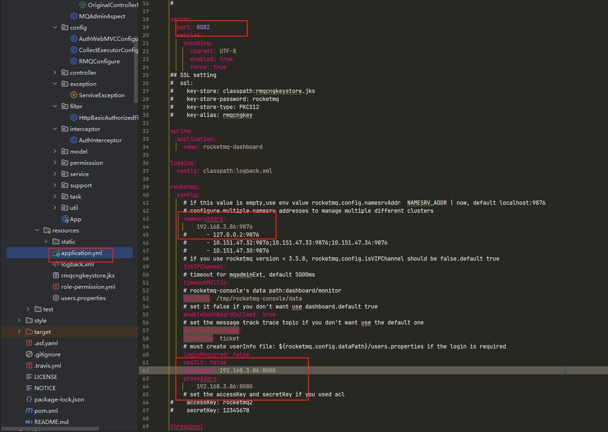 # 开启自动创建 Topic 加不加都行 autoCreateTopicEnable=true #内网ip namesrvAddr:nameSrv地址 公网访问设置公网IP 内网访问设置内网IP 以下所有IP需一致 namesrvAddr=192.168.3.86:9876 #brokerIP1:broker也需要一个ip 内网或公网 brokerIP1=192.168.3.86