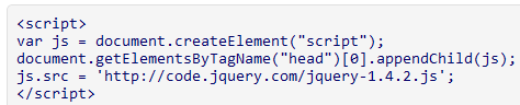 这段代码创建了script标签,并插入这条标签到文档中。关键在于,这个脚本的加载时异步的,不会影响页面渲染的进程,不会阻塞页面内容的展示。这样的方式尽管不会阻塞页面资源的加载,但却可能会阻塞其他的script脚本,不同浏览器在这点上的表现是有非常大的差异的,参看这篇文章动态引入的外部 JS 文件在各浏览器中的加载顺序不一致