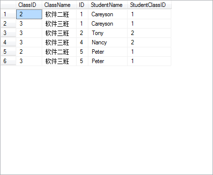 则结果从第一步的笛卡尔积中筛选出那些ClassID大于StudentClassID的子集: