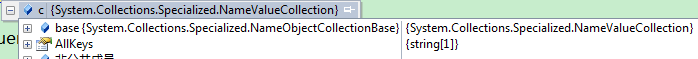 先看看调试时的情况,发现QueryString的实际类型是System.Web.HttpValueCollection,该类型继承自NameObjectCollectionBase,跟NameValueCollection的基类是一样的。那么最有可能的就是QueryString直接继承了NameValueCollection,并且重写了ToString()的方法。