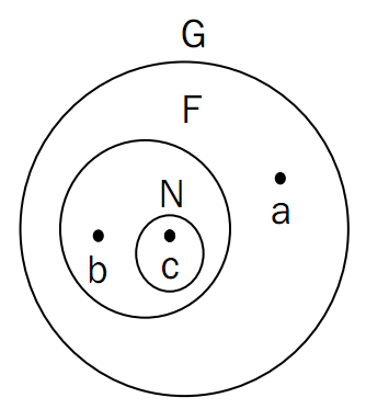 假设G,F,N 分别代表三个层次的函数,层次如图所示,a,b,c分别是其中的变量。根据上面谈到的作用域,我们有如下结论: