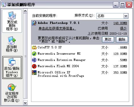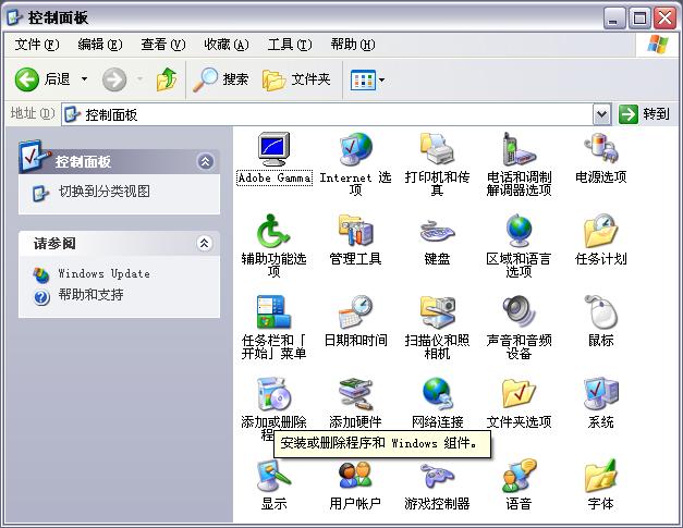 2,在控制面板中选择“添加/删除Windows组件”,打开窗口