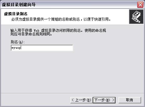 下一步,填写别名:myasp。