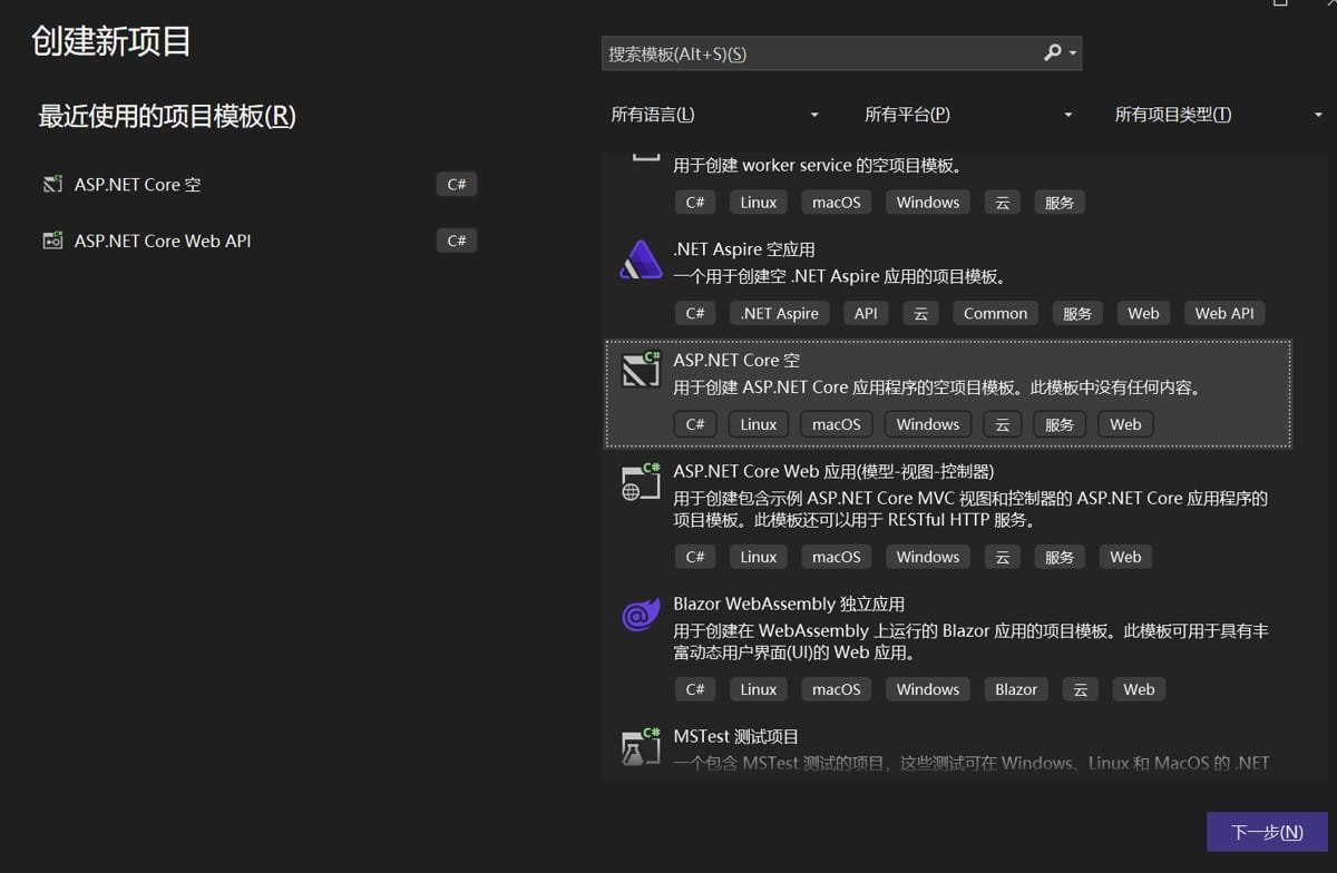 经常用WebService的朋友们都知道,.Net Core是不能直接新建Webservice的,所以我们需要新建一个空的.Net Core模板,取名TestWebService。.Net 框架根据实际需要选择,建议是6.0以上,我这里选择的是8.0。