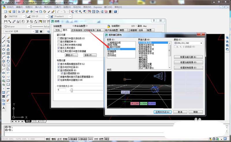 CAD三维透视投影怎么设置背景地球水平线颜色?