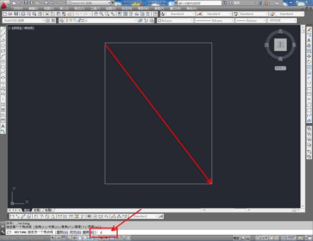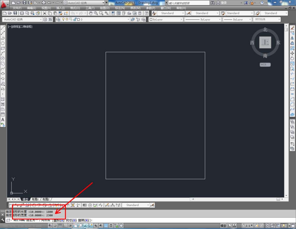 2、点击【矩形工具】,在命令栏输入:d并按下空格键确认后,绘制出一个1800*2300mm的矩形;