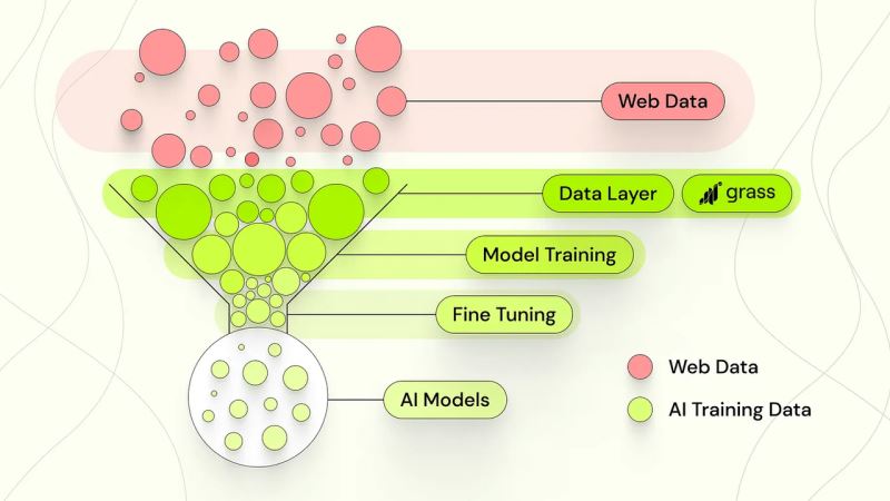 LLM 是大型语言模型,处理来自互联网的数十亿个单词和短语,以了解语言的工作原理。它们拥有的数据越多,它们就越聪明。Grass 提供源源不断的公共网络数据,确保 AI 模型保持最新状态并随着时间的推移不断改进。