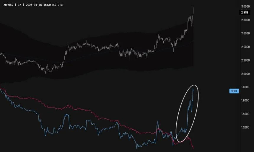 与比特币和以太坊等主要加密资产不同,XRP近期的上涨主要由现货投资者推动。订单流分析师Dom指出,XRP的上涨并未伴随资金费率和现货买进溢价的大幅上升,这意味着上涨主要来自现货市场的买盘,而非衍生品市场的推动。Dom认为,这种现象表明XRP具有较强的持续上涨潜力。