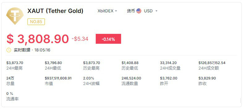 现货黄金触及3870美元新高,PAXG跟涨创历史纪录,代币化黄金市值逼近30亿美元