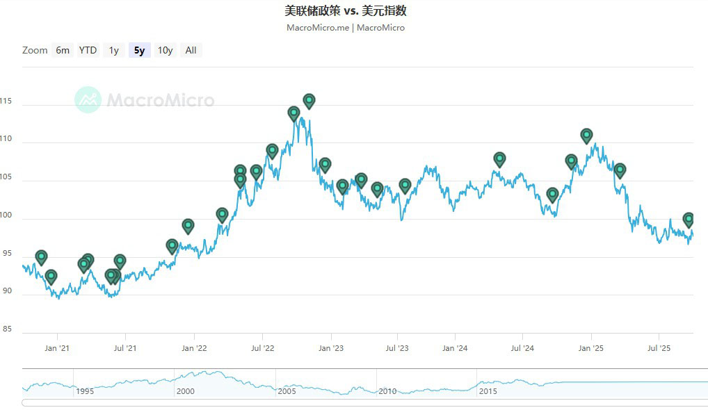 美联储政策VS美元指数,来源MACROMICRO