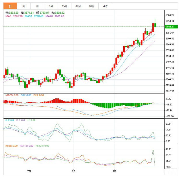 9月30日黄金走势K线图