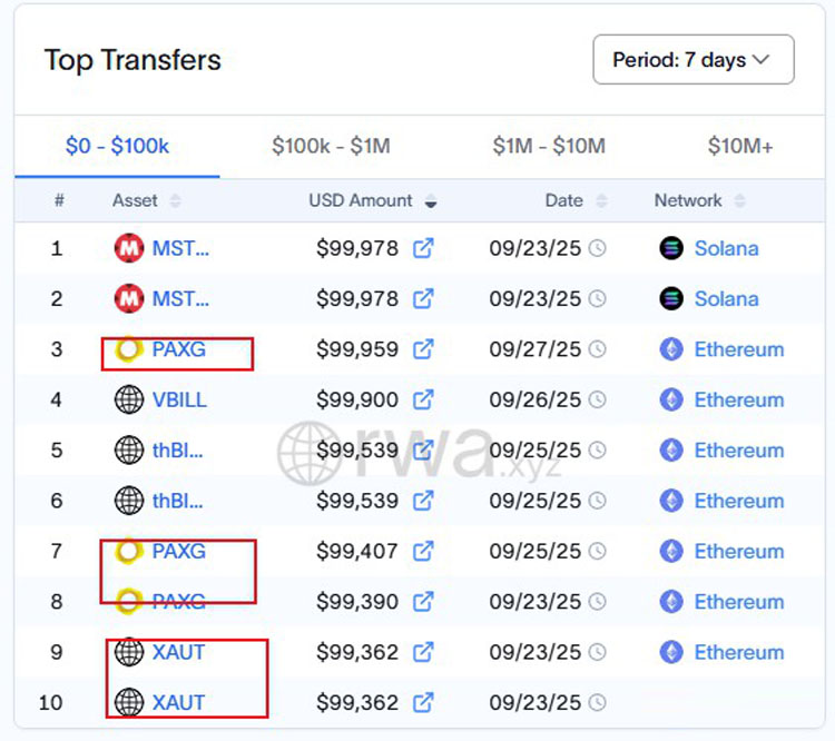 截至 9 月 29 日,该细分市场总市值强势攀升至 28.8 亿美元历史峰值,其中头部代币 XAUT 与 PAXG 凭借合规背书与高流动性脱颖而出,单月交易量双双突破 32 亿美元,印证了数字资产与传统贵金属融合的市场潜力。