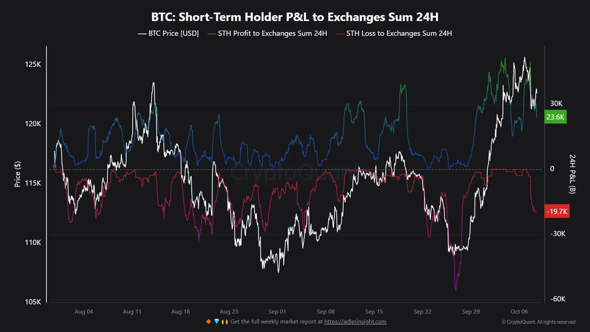 比特币短期持有者的盈亏情况。来源:Maartunn/X