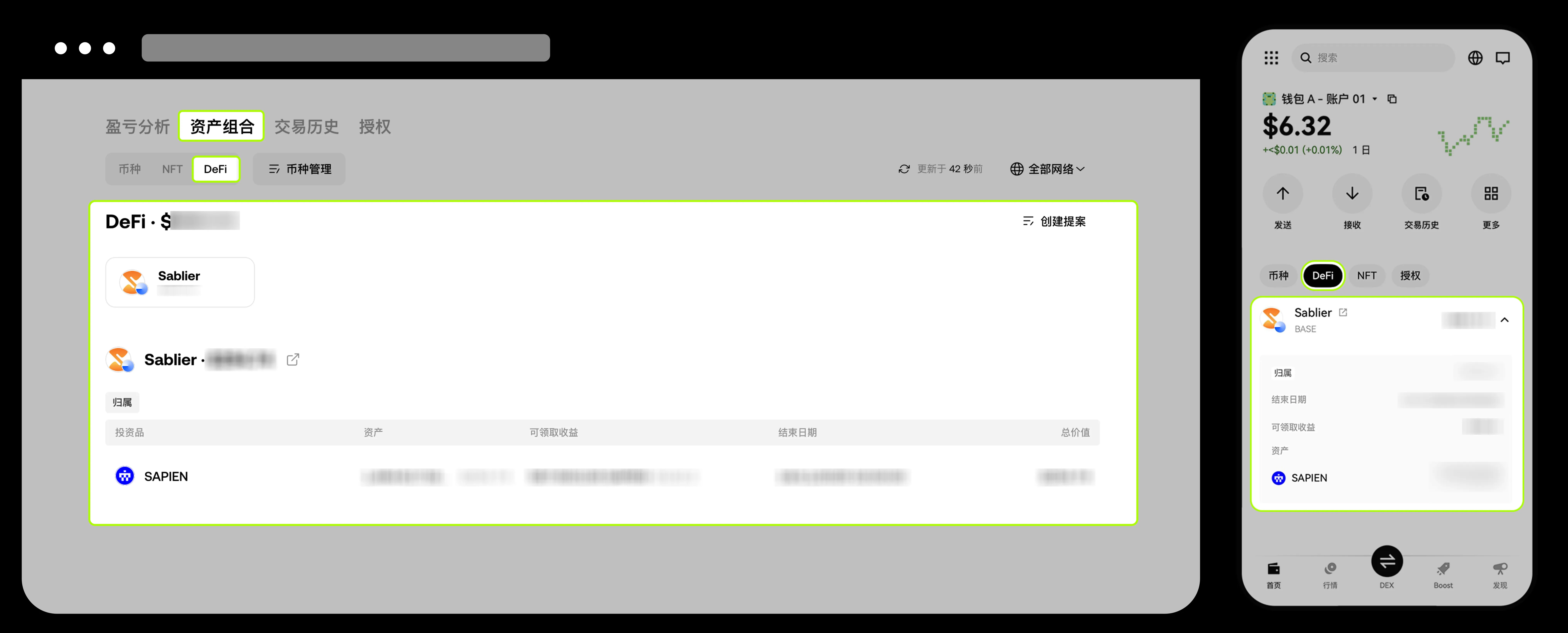 App 端、Web 端、钱包插件端均支持查看赚币资产,您只需要在钱包资产页面【发现】 - 【DeFi】 即可查看赚币资产。