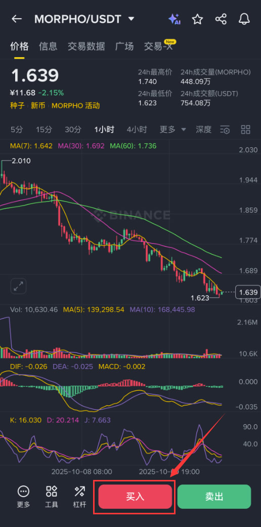 下面以币安为例,为大家演示Morpho币购买步骤教程。