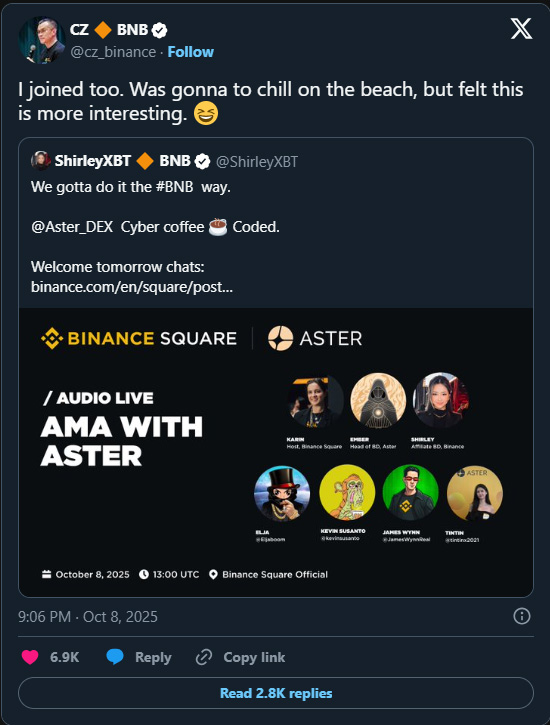 这笔投资不仅提供资金,也带来了技术孵化与行销支持。Aster 通过合作取得了庞大的用户曝光与跨链基础建设协助。