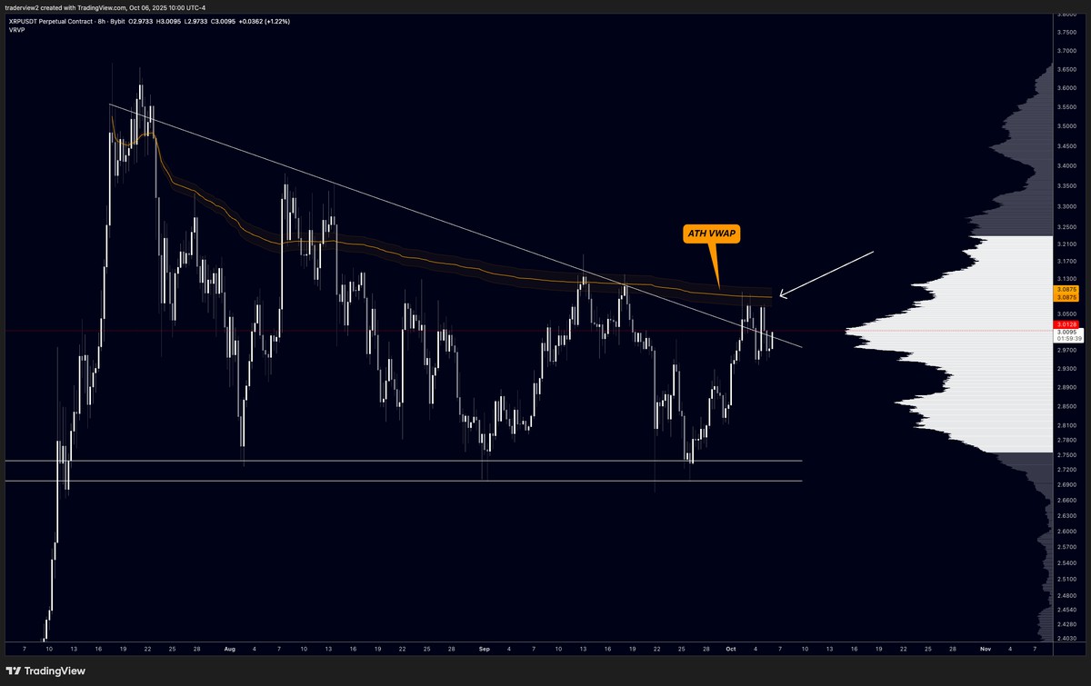- XRP/USD交易对需将3美元至3.10美元区间转为支撑,目前2.80美元仍是交易者关注的关键价位。