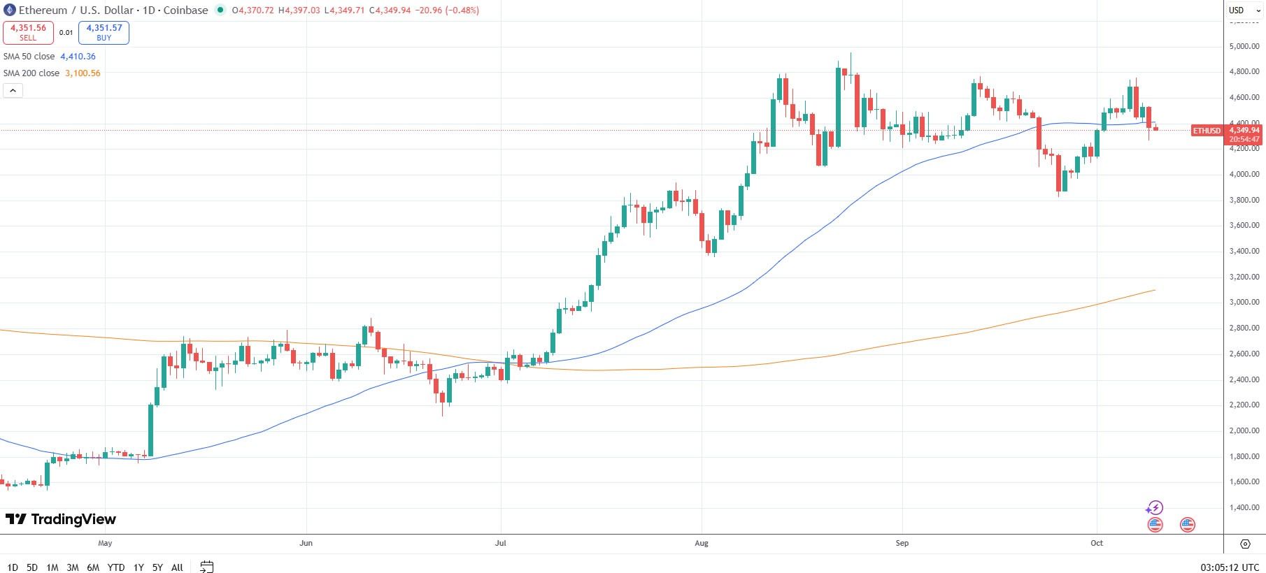 Newton表示,以太坊已完成9月上涨行情的修正,预计可能下探至4,200美元。他认为,这一价位将成为最佳支撑区域,随后以太坊有望再次上涨。