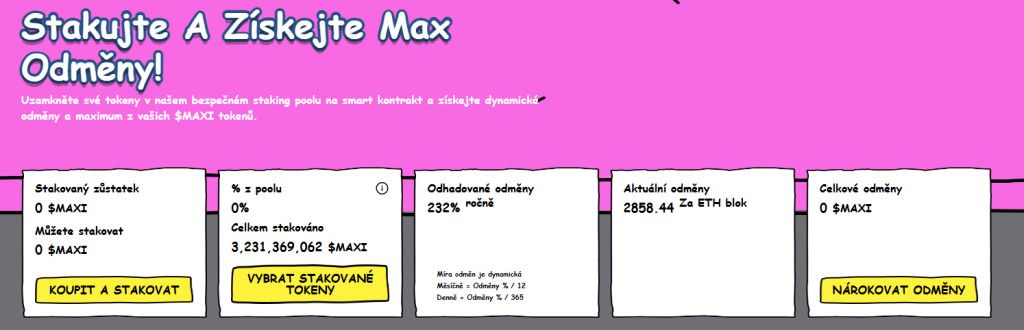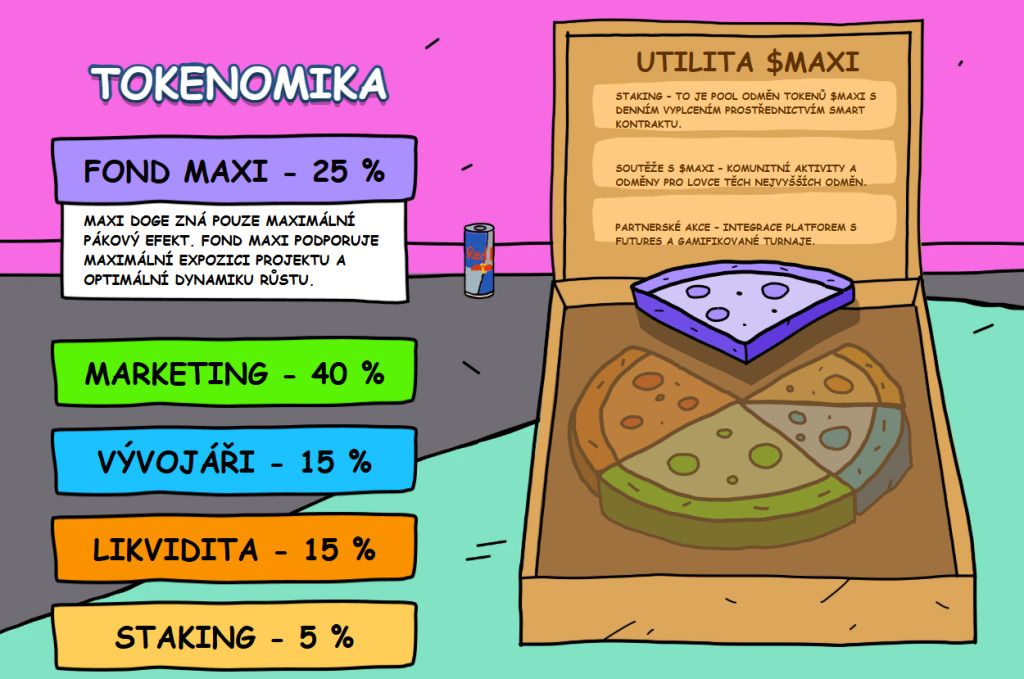 $MAXI 代币被划分为几个关键领域。其中最大的部分(40%)用于市场营销和推广。总供应量的四分之一分配给所谓的 Maxi 基金,用于合作和社区项目;15% 用于开发;15% 用于流动性。剩余的 5% 用于质押,为锁定代币的用户提供免费的加密货币奖励。