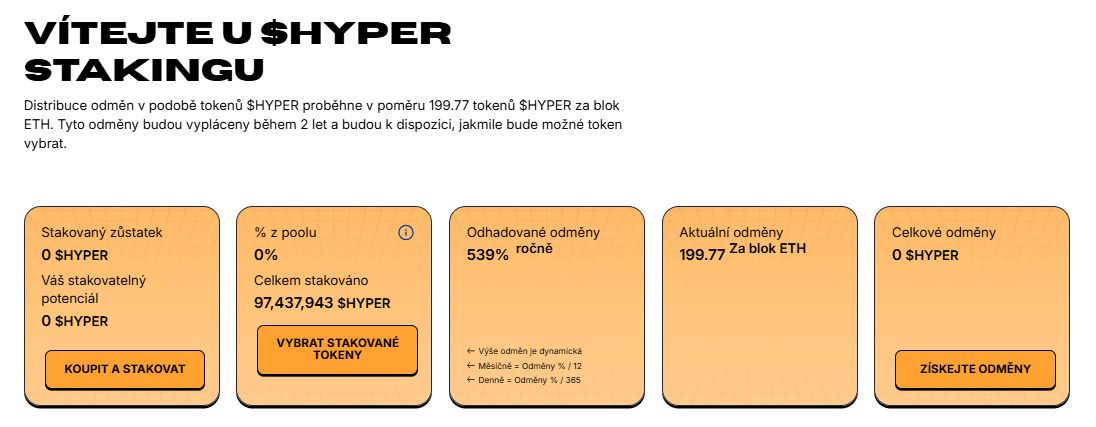 生态系统的重要组成部分还包括原生代币 $HYPER,目前处于预售阶段,价格正在逐步上涨。该代币也可以进行质押以产生被动收入。总供应量象征性地设置为 210 亿枚,不采用通缩机制。这些代币将用于市场营销、开发、奖励、交易所流动性和项目金库。