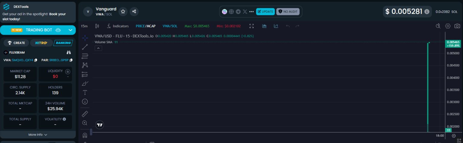 目前,VWA 在多个 Solana DEX 交易对上交易,其中最引人注目的是 VWA/SOL。截至撰写本文时,VWA 的市场价格约为 0.005128 美元/VWA,VWA/SOL 交易对的 24 个交易量总计约为 26,000 美元。