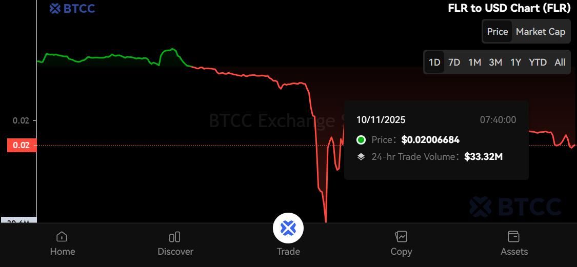 截至撰写本文时,FLR 币的交易价格为 0.0251 美元,市值为 18 亿美元,24 小时交易量为 3200 万美元。FLR 代币 24 小时变化率为 11.87%,过去一小时内波动幅度为 -0.33%。