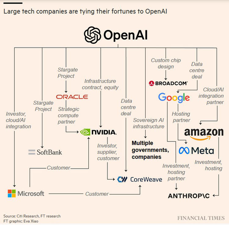英伟达和其他AI公司与OpenAI的关系。来源:金融时报