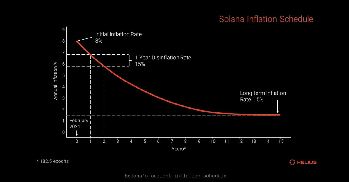 Solana 的通胀率每年下降15%,直到达到1.5%。来源:Helius