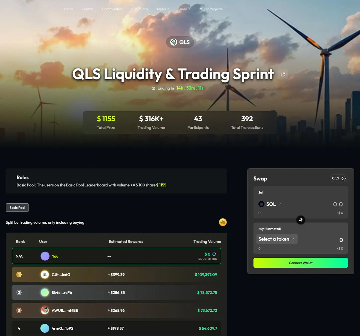 在TaskOn平台上,一场QLS 流动性与交易冲刺的竞赛以1155美元的奖金,驱动了三十多万美元的交易量。