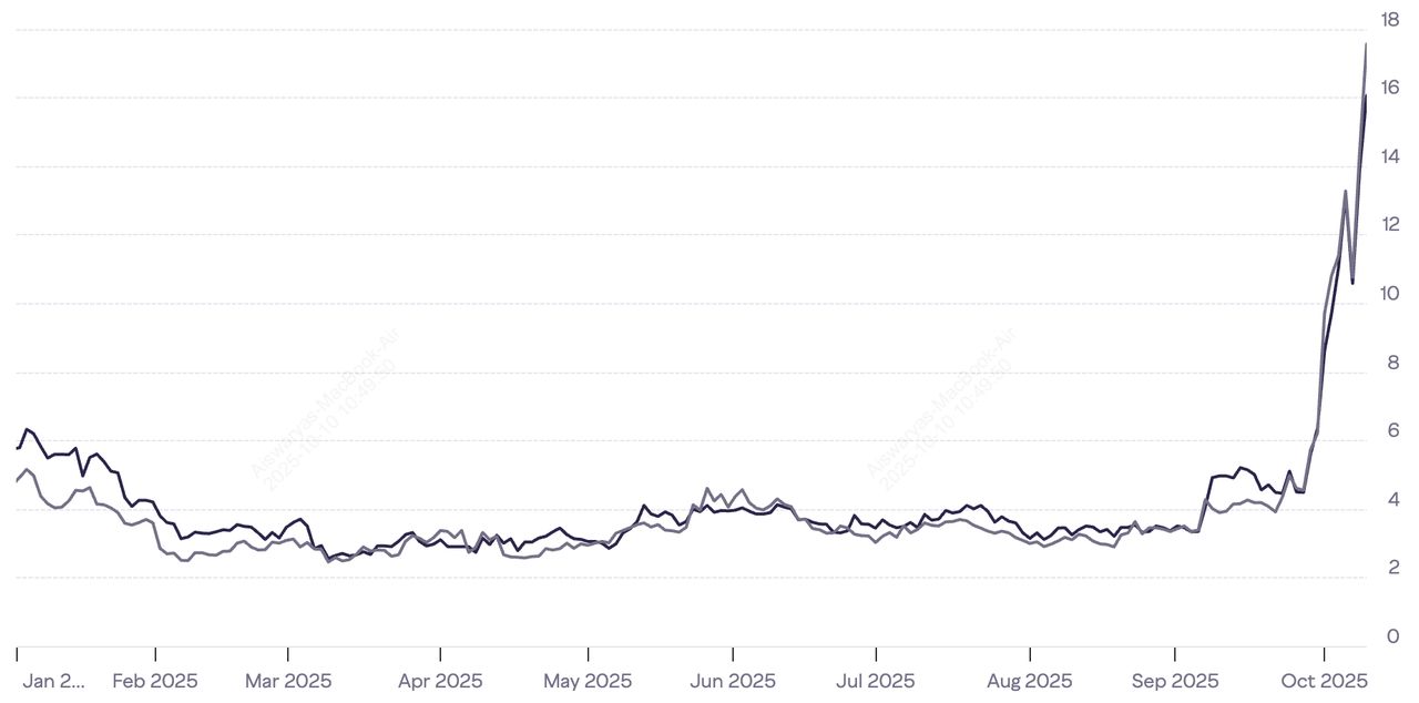 - 叙事驱动的价格行为:ZEC 的大部分飙升发生在 Naval Ravikant 于 2025 年 10 月背书之后,根据 Messari 的数据,这将其在社群媒体上的「心智份额」推升了 860%。然而,如果没有新的催化剂来维持叙事,基于情绪的反弹往往会迅速消退。