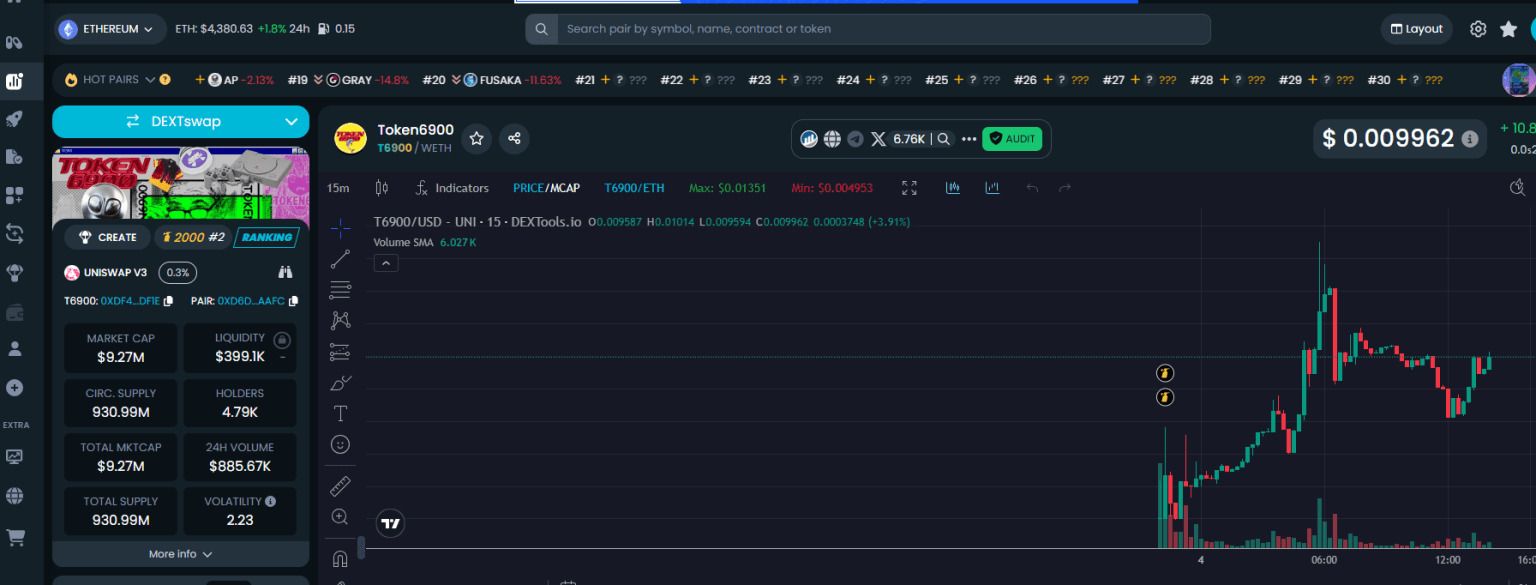 TOKEN6900 ($T6900)在 DEX 上首次亮相