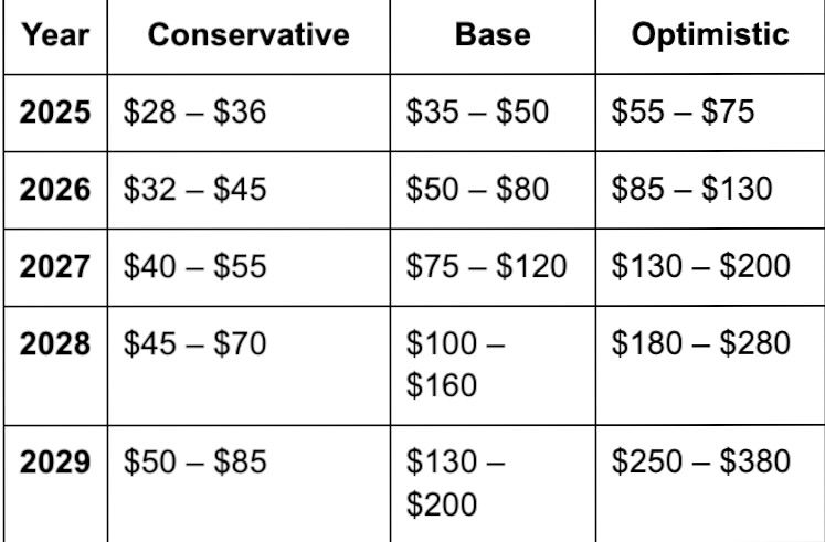 - 2026年第二季度 : 主网成功升级后达到55-70美元。
