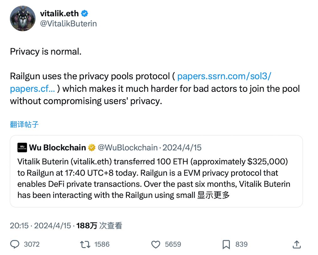 近期 ETH 基金会也下场为 Railgun 站台,10 月 9 日,ETH 基金会宣布 Kohaku 路线图要求集成 Railgun 技术。并且 Vatalik 此前向 Railgun 发送 30 万美元也加强了市场对隐私赛道的信心,$RAIL 当日快速上涨 270%也验证了这一现象背后的逻辑。