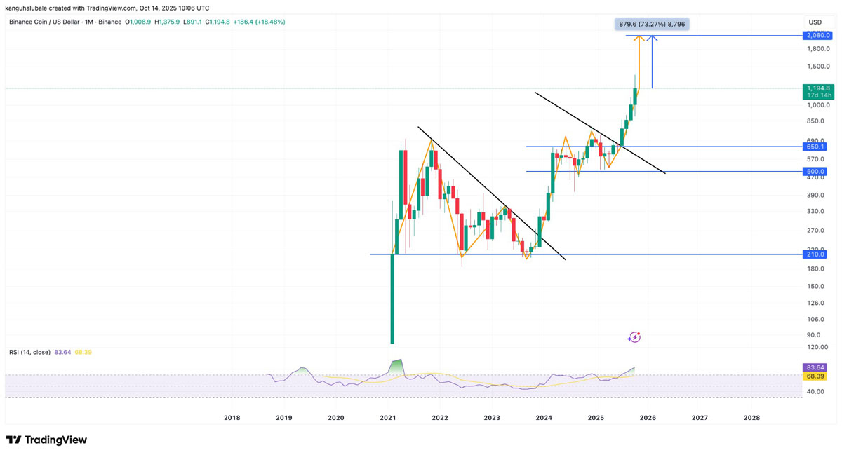 分析师们普遍关注BNB的下一个2,000美元目标。