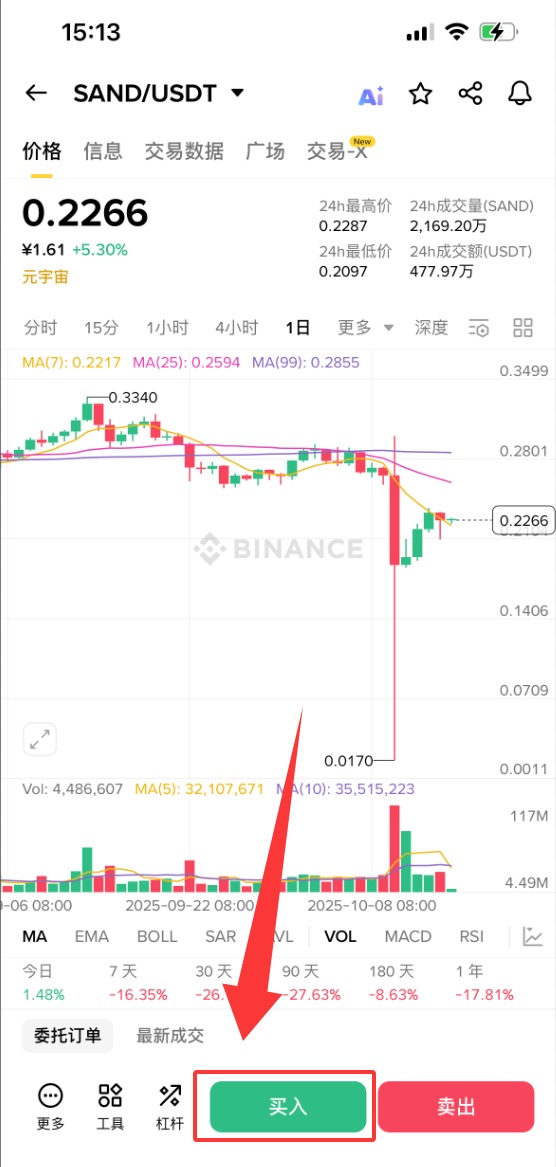 下面以币安为例,为大家演示SAND币购买步骤教程。