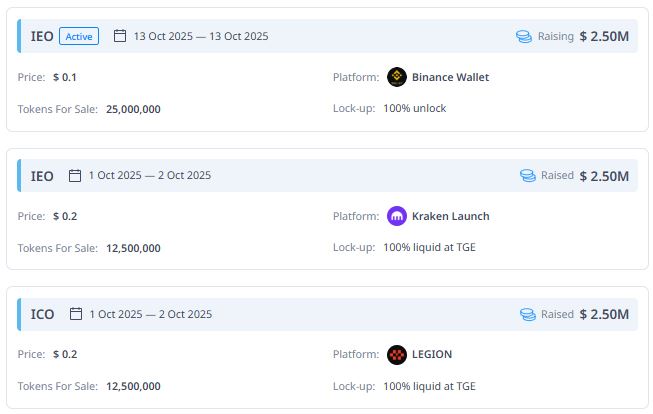 此外,在 2025 年 10 月 1 日至 2 日在 Kraken Launch 平台上举行的另一场 IEO 中,以 0.2 美元的价格出售了 1250 万个 YB 代币,筹集了 250 万美元,并以 100% 的流动性提供代币。