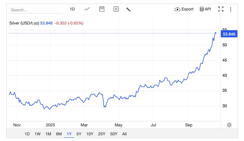 虽然比特币也在2025-10-06创下126,000美元以上的历史新高,随后在10-17回落至约104,000美元,但白银表现出显着的优异表现,现货价格推向50多美元的中段,避险资金流入加速。