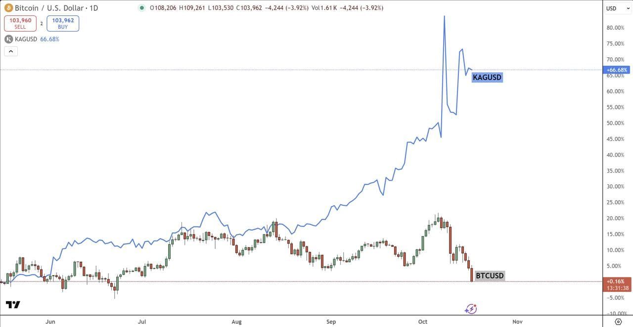 在过去30天内,趋势已经加强但未变得泡沫化。KAG上涨约30%,市值超过2亿美元。XAGX攀升约40%,仍是小盘股,完全稀释估值在数千万美元的低段。GRAMS上升约27%,完全稀释估值在数百万美元的中段。